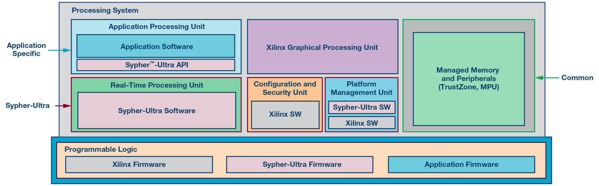 ® UltraScale+™ MPSoC) FPGA 제품을 사용해서 사이퍼-울트라(Sypher™-Ultra)를 개발했다. 사이퍼-울트라는 다층 보안 제어를 사용하는 뛰어난 보장성의 암호화 시스템을 통해서 데이터 무결성에 대해서 높은 수준의 신뢰도를 제공한다. ZUS+의 보안성 토대에 ADI가 개발한 추가적인 보안 기능들을 사용해서